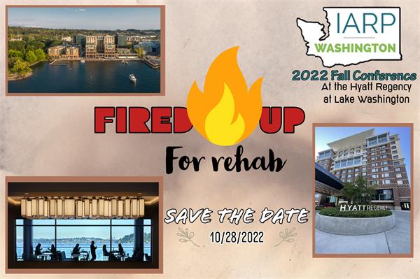 Let's get Fired Up for Rehab at this year's 2022 Fall conference hosted by your WA IARP Board. We have a fantastic line-up for you this year, and are so thrilled to be able to see everyone in person together at the Hyatt Regency at Lake Washington on October 28th.